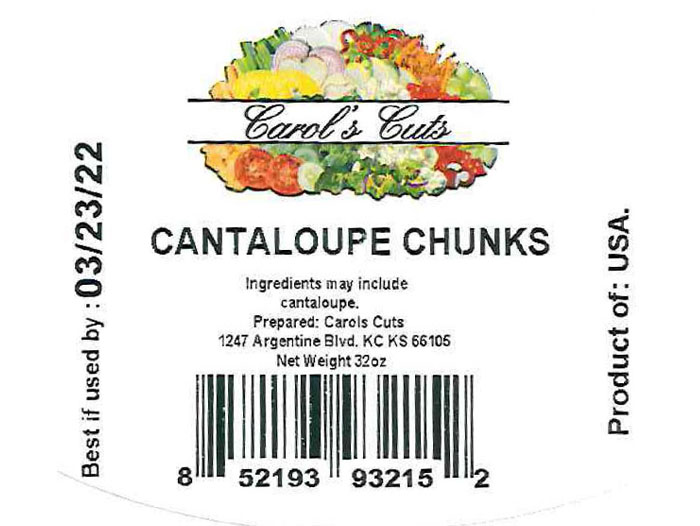 The product is packaged in 4 oz, 8 oz, 16 oz and 32 oz (consumer only) as well as 5 lb (foodservice only) clear plastic containers marked Fruit Medley, Fruit Tray, Fruit Salad, Cantaloupe Chunks, Hawaiian Blend, and Melon Medley.  The expiration dates marked on the labels range from 3/21/2022 to 3/26/2022.  The product is marketed under the label Liberty Fruit Co., Inc. and/or Carol’s Cuts with the following UPC codes:  886810710052, 886810710250, 886810710076, 886810710120, 886810710014, 886810710069, 886810060560, 886810060591, 886810060546, 886810710403, 886810710410, 886810710793, 886810710502, 886810710762, 886810710724, 886810974263, 886810710809, 886810731002, 886810731019.