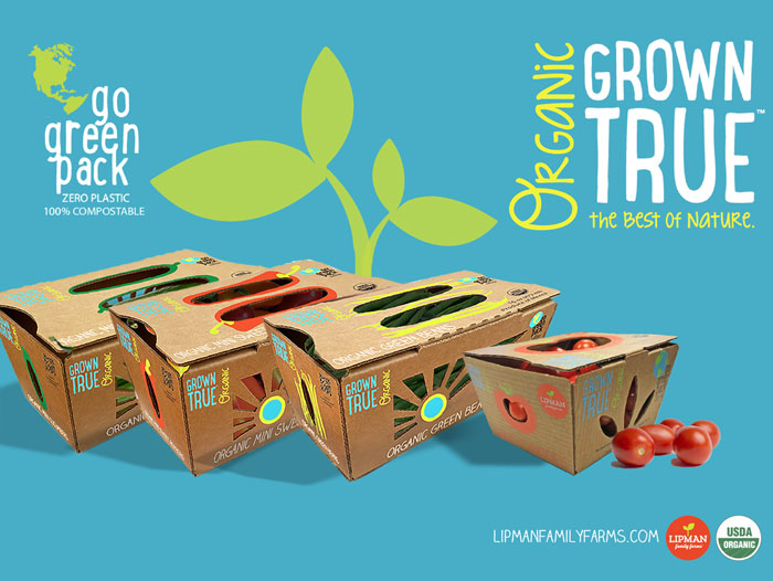 IMMOKALEE, Fl. – Lipman Family Farms will showcase the expansion of their compostable packaging line at the upcoming Southern Innovations conference and the Organic Produce Summit, furthering the company’s dedication to providing innovative, sustainable practices from farm to shelf. Designed for organic grape tomatoes, mini cucumbers, green beans and mini sweet peppers under Lipman’s Grown True organic line, the packaging meets the growing consumer demand for environmentally friendly products and sourcing.