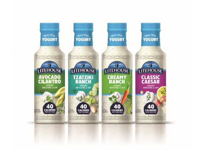 Find 12 oz. Litehouse Lower-Calorie Creamy Dressings in the refrigerated produce department at retailers nationwide, including Walmart, Albertsons and many regional retailers, with an MSRP of $4.49-$4.99. The dressings are gluten-free and made with no artificial colors, flavors or preservatives.