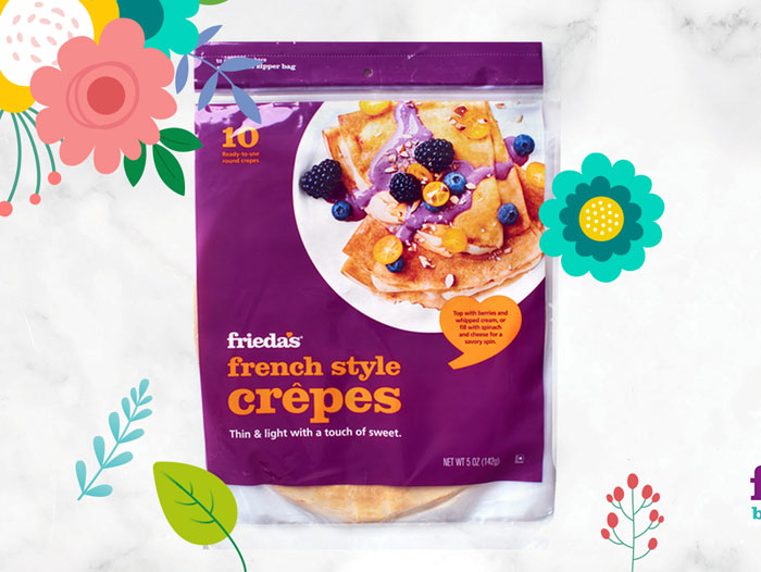 This year, make your store the crêpes destination by creating endcaps and displays that transform your store into a turn-key brunch destination. Include Frieda’s French Style Crêpes, spring vegetables like asparagus and bell peppers, and a variety of specialty cheeses to help shoppers answer, “How should we celebrate mom?”