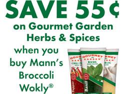 The promotion will offer shoppers a saving of $0.55 off any tube of Gourmet Garden Herbs & Spices with the purchase of a 2-pound bag of Manns Broccoli Wokly.