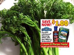 In February, the company is working with Litehouse Foods to offer shoppers $1 off any Litehouse salad dressing with the purchase of Manns Broccolini. The IRC includes a recipe for Szechwan Broccolini & Beef, to leverage Chinese New Year sales. This is one of three cross promotions with Litehouse Foods scheduled for 2010.