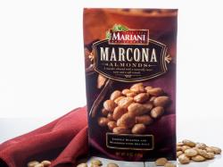 Slightly smaller and rounder than the more familiar California varieties, they pack the same nutritional punch with plenty of protein, fiber and unsaturated fats. Mariani’s Marconas are available in attractive stand-up, 6-ounce foil resealable packaging. The rich royal hues of purple, black and brown on the package are fitting for the almond known as “the queen of almonds.”.”