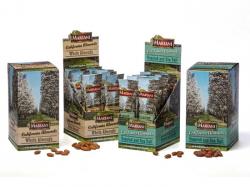 The pre-filled shelf boxes and foil packages boast photography of California’s almond orchards in bloom. They are packed twelve packages to an easy-open carton and sized to fit in most popular rack and shelf configurations.