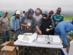 This morning, Markon, along with Labor of Love, surprised a romaine harvesting crew packing the Markon Fresh Crop label with breakfast on the farm as well as gift cards to Walmart.
