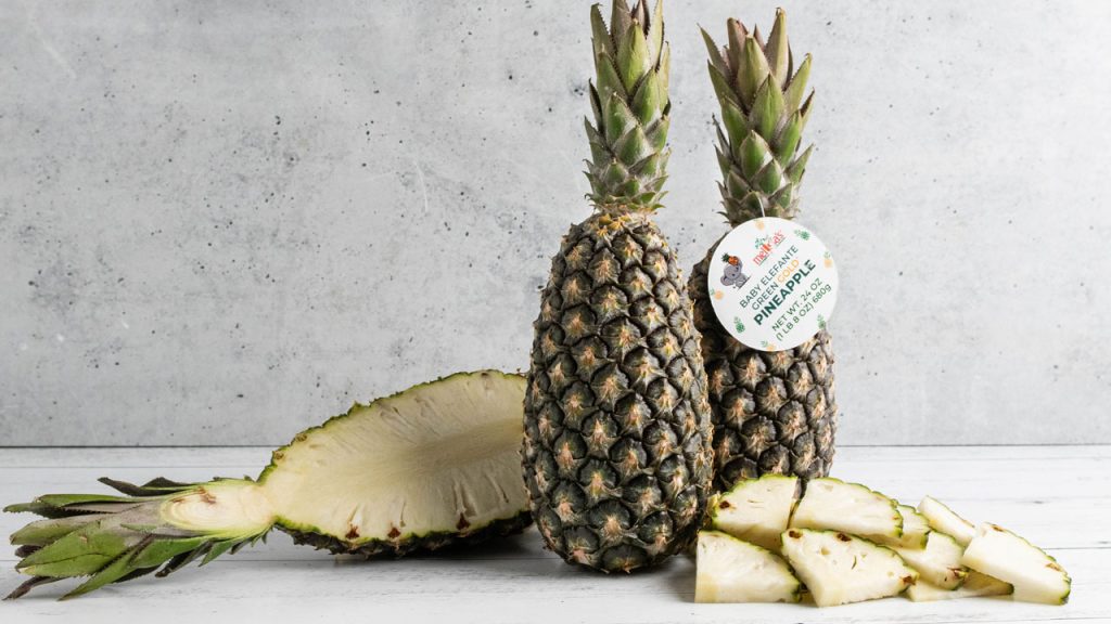 Los Angeles, CA — Melissa’s Produce is proud to announce the arrival of the Baby Elefante Green Gold® Pineapple, a Melissa’s exclusive variety grown in the fertile soils of Ghana, where elephants roam the fields. Unlike traditional pineapples, this compact fruit offers a unique shape and vibrant green-gold skin that sets it apart at first glance.