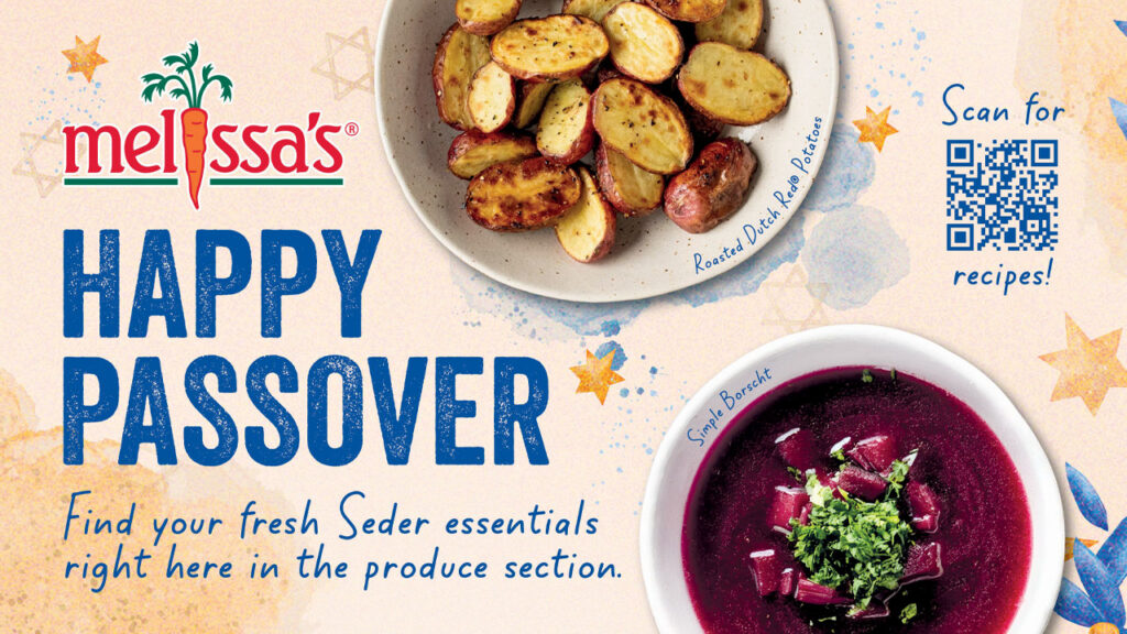 Melissa’s supports retailers with retail-ready merchandising tools, including POS signage, seasonal recipes, and digital assets designed to support both full Passover sets and smaller, focused displays.