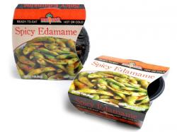 Spicy Edamame product is blended with a traditional mix of Japanese spices including sesame, soy sauce, salt, ginger, and Togarashi seasoning. These seasonings enhance the flavor of edamame with a spicy and savory taste. The edamame is fully cooked ready-to-eat, and can be served cold straight out of the bowl. It is also delicious warmed up in the packaged microwaveable bowl for 45 seconds.