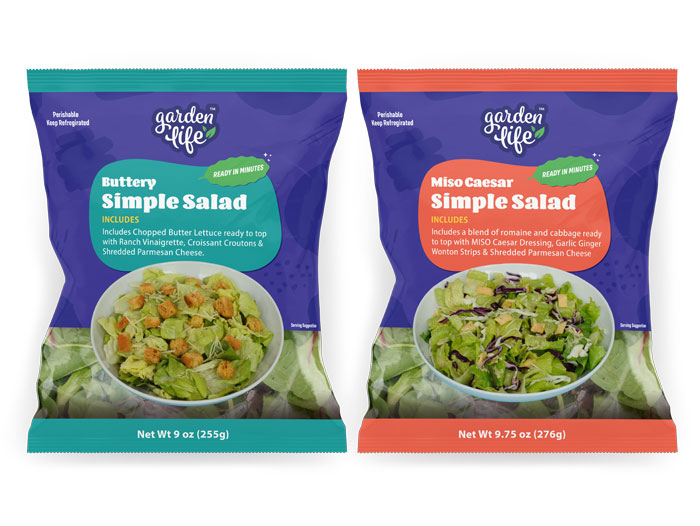 Developed with satisfaction in mind, the Buttery Simple Salad kit includes chopped butter lettuce, ranch vinaigrette, croissant croutons, and shredded parmesan cheese. The Miso Caesar Simple Salad kit includes a blend of romaine and cabbage, Miso Caesar dressing, garlic ginger wonton strips, and shredded parmesan cheese.