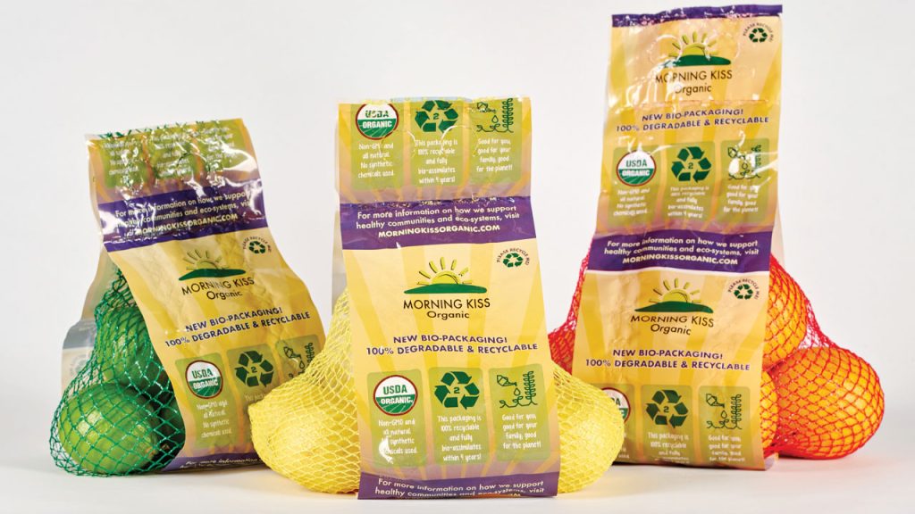Morning Kiss Organic is committed to sustainable packaging options and reducing the amount of plastic that sits in landfills. The companies are utilizing several new packaging options – Bio Able bags, fiber-based Eco Boxes & 100% paper packaging. Bio-Able packaging is 100% degradable. While traditional plastics can take over 200 years to break down, this material breaks down within 4 years and fully bio-assimilates in both terrestrial and marine environments. Morning Kiss Organic is also rolling out two different types of 100% fiber-based packaging – paperboard Eco Boxes and paper and sugar cane mesh packaging for potatoes. Both options are fully biodegradable and easily recyclable at the consumer level.