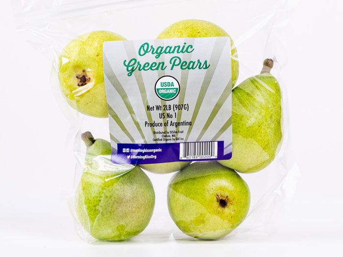 As with all of its offerings, organic pears will be packed fresh to order. Morning Kiss Organic employs just-in-time inventory management, reducing loss to product spoilage at retail, and therefore protecting the retailer’s bottom line.