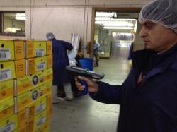 Receiving – Mushrooms are weighed using a connected floor scale and information about the delivery is logged using a Vantage Touch screen. Information about the supplier, mushroom type, expiration date, weight and storage location is captured electronically. The data is stored on the server and a pallet label is generated to uniquely identify the pallet. Inventory is updated.