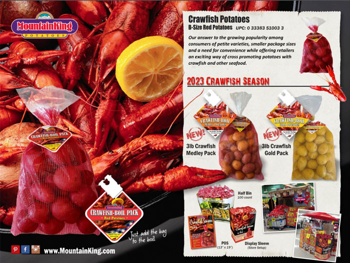 HOUSTON, TX – With springtime crawfish boils just around the corner, MountainKing Potatoes has introduced two new offerings designed to help its grocer partners capitalize on the half-billion-dollar season that now spans far beyond its Louisiana roots.