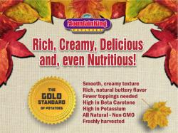HOUSTON, TX – With year-over-year sales of yellow traditional potatoes up sharply, Texas-based MountainKing Potatoes is looking to maintain the positive momentum by rolling out its Holiday Gold Rush promotion for 2016 featuring three of its freshly harvested gold varieties.