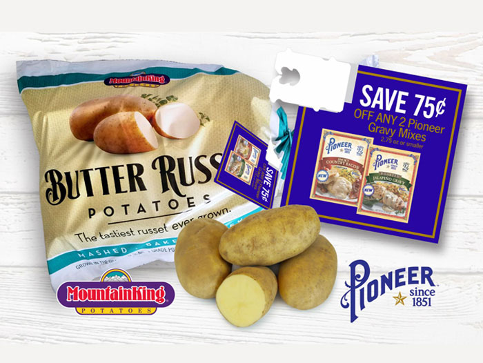 HOUSTON, TX – MountainKing Potatoes is pairing its high-flavor Butter Russets with Pioneer, the longtime maker of rich, flavorful gravy mixes, to create a retail promotion ideal for shoppers preparing popular fall-time dishes.