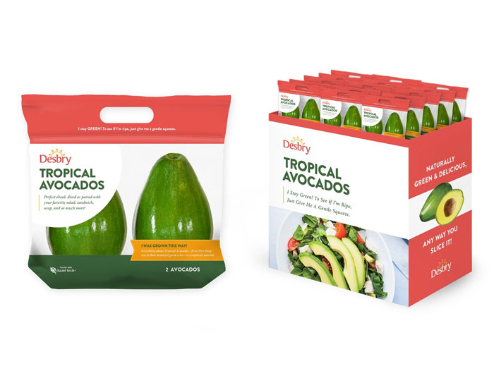 “Moxxy’s designs for the bags and merchandising display bins needed to achieve multiple goals,” said Chris Gonzalez, VP of Sales for WP Produce. “Not only to further establish our premium Desbry brand at retail and increase awareness of Tropical Avocados throughout North America, but also demonstrate to retailers how we are dedicated to supporting this new item in their stores by educating shoppers about this unique fruit, and inspiring purchase and trial with recipes and usage tips.”