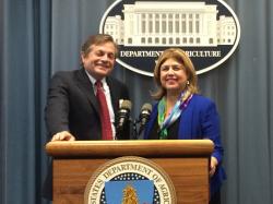 Washington, D.C. –  National Watermelon Promotion Board Executive Director Mark Arney (L) is pictured with USDA-AMS Administrator Anne Alonzo during a meeting at the USDA in Washington D.C. Arney was there with CEO's of other similar programs (Commodity Roundtable) that operate under USDA oversight. In addition to Alonzo, Deputy Secretary Harden made a presentation to the group. Harden, is the second highest ranking USDA official.