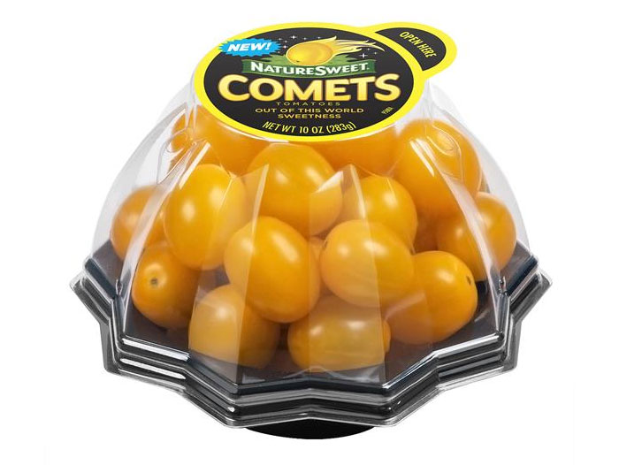 Because of its 9,000 full time Associates, NatureSweet® has officially launched its newest addition, Comets™-a sweet golden snacking tomato that’s out of this world sweet. Comets™ are tested for sweetness, firmness and freshness to the highest quality standard. Within 24 hours they’re packed, shipped, and on their way to your local store.