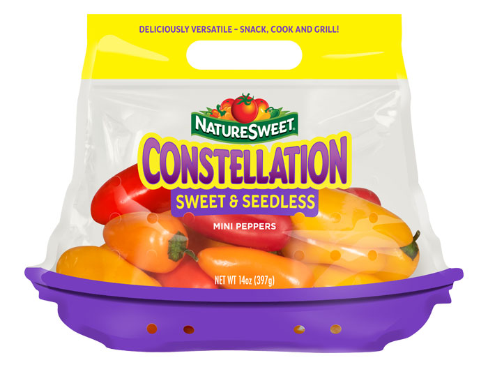 SAN ANTONIO, TX- NatureSweet, the #1 snacking tomato brand and largest vertically integrated agricultural company in North America, has debuted another convenient product, Constellation Sweet & Seedless Mini Peppers, a colorful, crunchy and delicious medley that is revolutionizing the world of healthy snacks. The flavorful sweet peppers are red, yellow, and orange and consumers are describing them as sweet, light-tasting, the perfect balance of taste and texture, and they are amazed there are no seeds!
