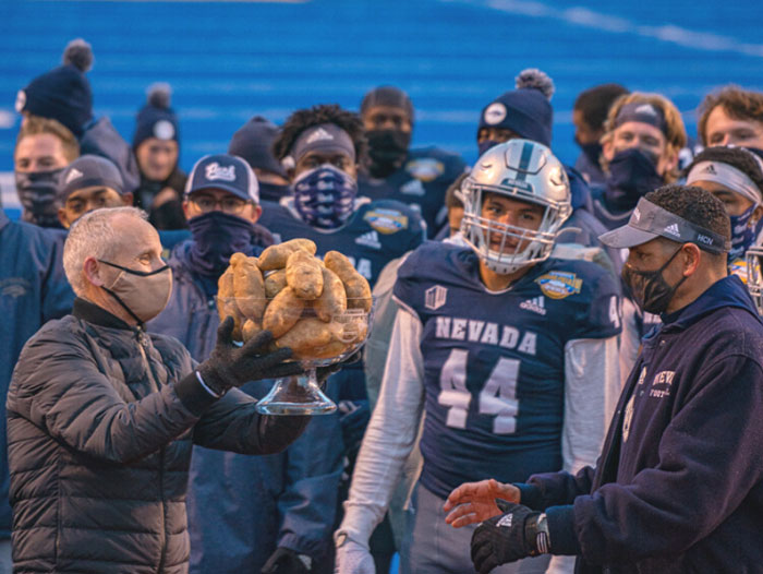 Just seconds before the Nevada Wolf Pack defeated the Tulane Green Wave (38-27) at the 24th Annual Famous Idaho® Potato Bowl, the pumped-up players doused head coach Jay Norvell with Idaho® potato fries and Gatorade. However, when the fries landed on the playing surface the Wolf Pack were penalized 15 yards for unsportsmanlike conduct. The Green Wave took advantage and ran for a 65-yard touchdown. It wasn’t enough to change the outcome of the game but it surely generated headlines. And, it’s 2020 so nothing surprises us.