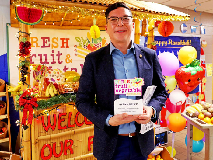 (ELIZABETH) – New Jersey Department of Agriculture and USDA representatives presented Nicholas LaCorte-Peterstown School No. 3 in Elizabeth with the Fresh Fruit and Vegetable Program VIP Award last week.