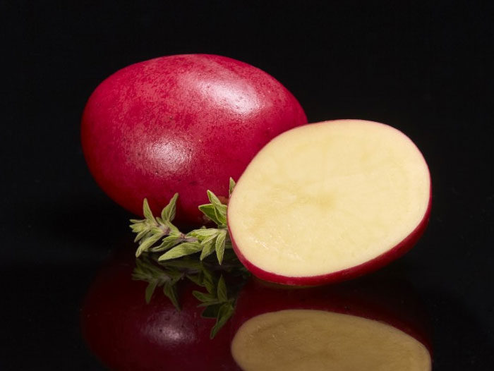 This potato variety started out in the Netherlands where it showed early promise based on yield, internal and external quality as well as disease and insect resistance. Likewise, the variety performed well in growing regions of the U.S. and Canada. Sensory testing showed that not only does the Golden Red taste better than standard, mainstream red potatoes; its internal and external appearance outshines its commodity counterpart.