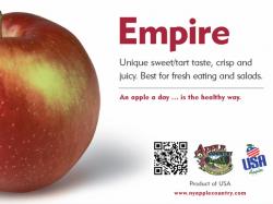 The Apple Association’s new POS material all contain prominent QR codes, which link to online videos that show how New York apples are grown, packaged and delivered.