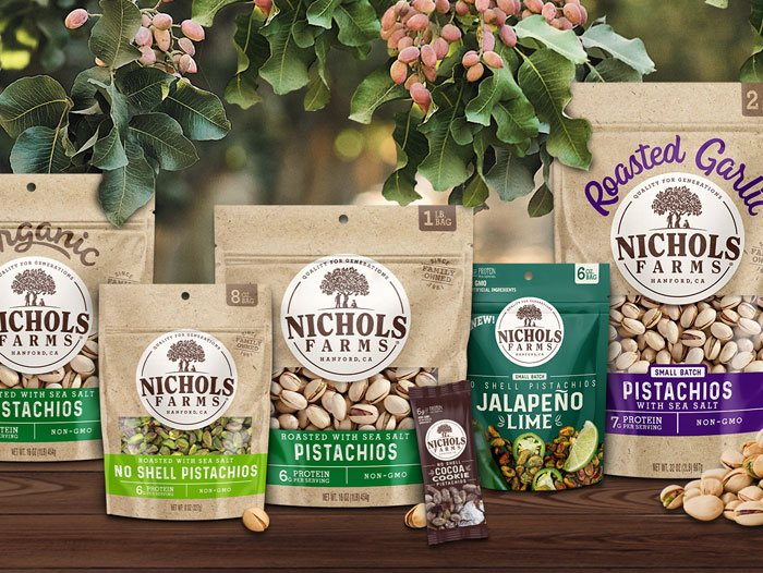 Nichols Farms is a fourth-generation farming family located in the heart of California’s fertile San Joaquin Valley. They offer non-GMO, California-grown, and organic CCOF pistachios in a wide range of pack sizes and product lines, including inshell, no-shell, and an almond-pistachio Mix.