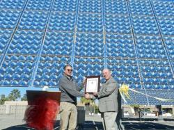The advanced solar project works by harnessing the area’s vast solar resources and utilizes dual axis tracking technology versus the traditional fixed solar plates. The new,  environmentally-friendly system will displace 540 metric tons of carbon dioxide annually,  the equivalent of taking 112 cars burning 60,272 gallons of gas off the road in one year or the annual consumption of electricity for 80 homes.