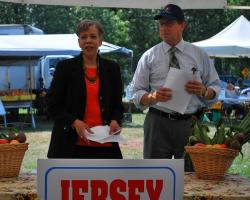 Fisher made his call at the Hunterdon Land Trust Farmers Market in Flemington, where there are farmers selling their just-picked Jersey Fresh fruits, vegetables and herbs and vendors selling artisan cheese, meat, eggs, baked goods, Jersey wine and cut flowers to beautify the dinner table.