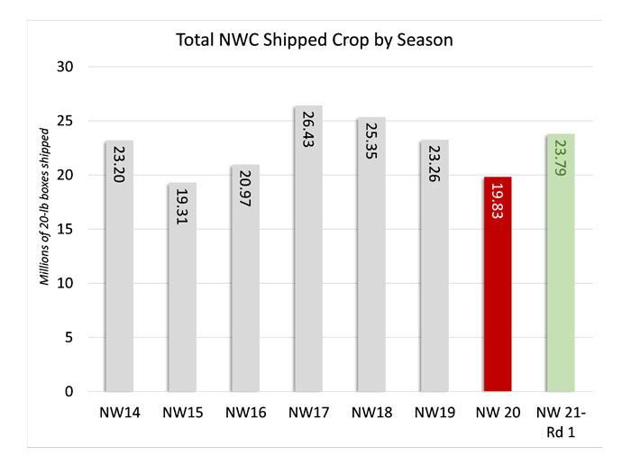 2021 NW Round 1 Crop Estimate: 23,792,000 boxes