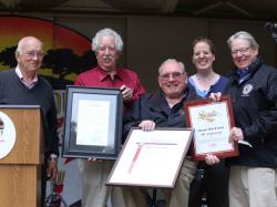 On Saturday, May 31, Ocean Mist Farms was honored for the impact it has made in the community since 1924 at a presentation that was part of the Castroville Artichoke Food and Wine Festival’s official program. On the Monterey County Fairground main stage, Monterey County Supervisor Lou Calcagno, State Senator Bill Monning and Amy Uber, Senior Agricultural Economist from the California Department of Food and Agriculture paid tribute to the company and presented Ocean Mist Farm’s CEO Ed Boutonnet and grower/owner Hugo Tottino with proclamations and commemorative plaques.