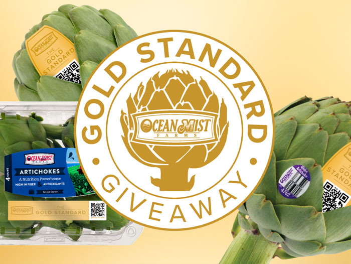 CASTROVILLE, Calif – Ocean Mist Farms, the leading grower and marketer of fresh artichokes in North America, announces the launch of its annual spring promotion conveying the health and nutrition benefits and accolades of their famous Gold Standard artichokes. The Gold Standard Giveaway will run from April 24 – June 1, giving participants the opportunity to win one Grand Prize VISA gift card valued at $1,000 or one of five VISA gift cards valued at $100.