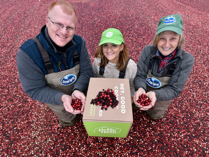 BOSTON — Ocean Spray announced a partnership with HelloFresh, the world’s leading meal kit company, as the exclusive provider of dried cranberries to HelloFresh in 2020. The two companies kicked off the partnership with a cranberry harvest bog event, where HelloFresh team members were able to learn more about cranberry farming, the health benefits of the cranberry, and the history of the superfruit directly from 6th and 7th generation farmers in Massachusetts.