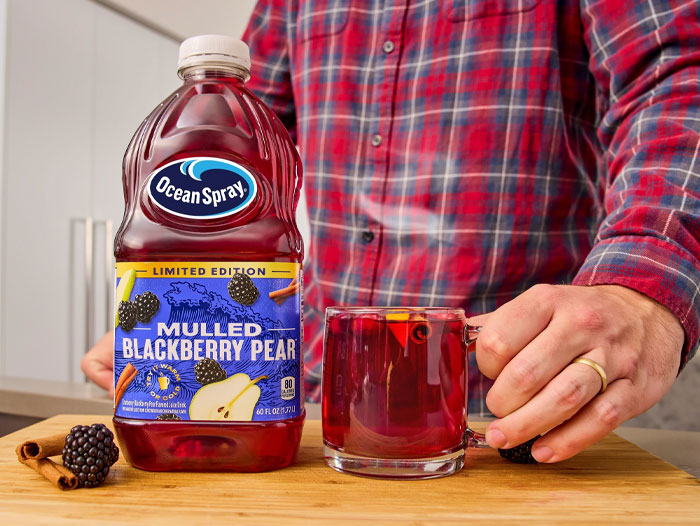 Just Add Cran™ to Any Flavor: With nearly 20 flavor blends, Ocean Spray is known amongst its fans for creating a cranberry-forward fruit pairing for every taste bud. This year, Ocean Spray is putting that to the test by creating one of its first-ever limited-edition juice drink flavors inspired by the taste and feel of the season: Ocean Spray® Mulled Blackberry Pear™ Juice Drink. The new flavor is unique in the brand’s portfolio, as it’s the first juice drink flavor that has been marketed to be served both hot and cold. Because of the unique tannins in the cranberry, cranberry juice can uniquely replicate the flavor of wine, and combined with flavors of mulling spices like ginger, cinnamon, clove, and peppercorns, it closely replicates a famous holiday beverage.