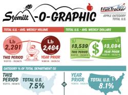 WENATCHEE, Wash. – Retail prices for the consumer favorite Honeycrisp apple rose in October 2015, yet the total dollars apples contributed to the produce department fell by half a percent when comparing the same four weeks from 2014. These and other category facts are illustrated in the latest Stemilt-O-Graphic following the release of October retail scan data by Nielsen Perishables Group late last week.