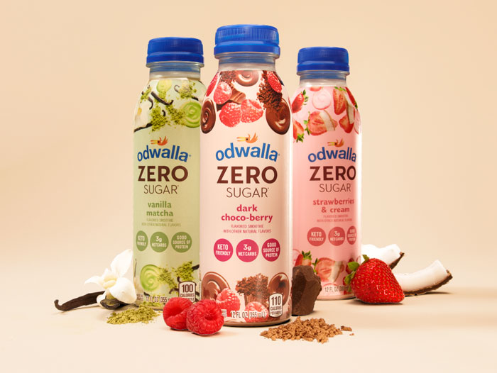One of the first zero sugar smoothies to hit shelves, OdwallaⓇ Zero Sugar provides consumers with a good source of protein made with keto friendly ingredients. Each OdwallaⓇ Zero Sugar product is vegan and gluten free, containing 5 grams of plant protein, 3 grams of net carbs, 2 grams of MCT oil and 110 calories or less per bottle.