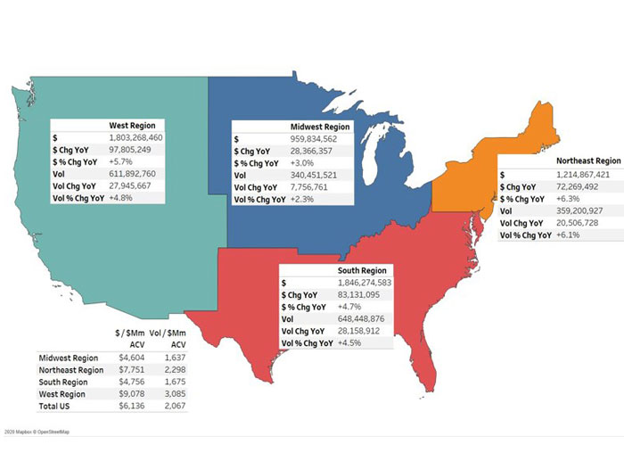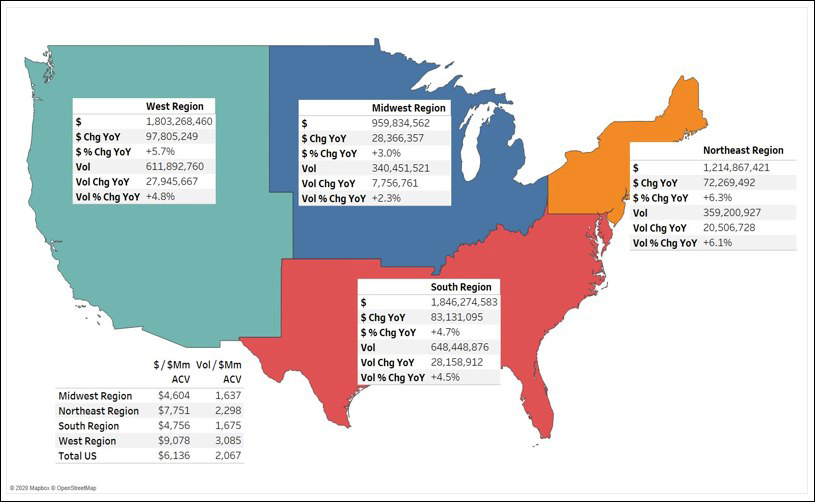 “One finding that jumped out is the increase in organic produce in the Northeast region of the U.S,” said Seeley. “The Northeast is the second strongest overall region for organics, and in 2019 had dollar and volume increases of over six percent. Coventional produce in the Northeast region was flat in volume and conventional sales dollars increased by less than one percent. In every region of the U.S., it’s organic produce that is driving dollar increases for retailers.”