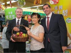 HONG KONG – With the pear being the State of Oregon’s prized, official state fruit, and the related industry accounting for US$129 million in added value to the economy, Oregon Governor John Kitzhaber shared his excitement in kicking off the delicious USA Pear season at a local supermarket in Hong Kong today.