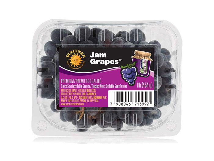 Pacific Trellis Fruit is one of the largest importers of grapes from South America.  JAM grapes, available in 10/1-pound clamshells, are part of a line of 1-pound specialty grapes including  Cotton Candy, Candy Snaps, Candy Dreams and Candy Hearts, all sold under the Premium Dulcinea® brand.