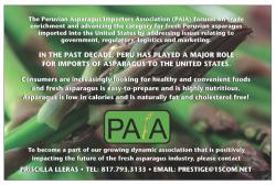 FOR IMMEDIATE RELEASE: February 15, 2011 — The Peruvian Asparagus Importers Association (PAIA) has begun 2011 emphasizing on their commitment to advancing the asparagus industry and focusing on objectives that will enhance and benefit the overall trade.