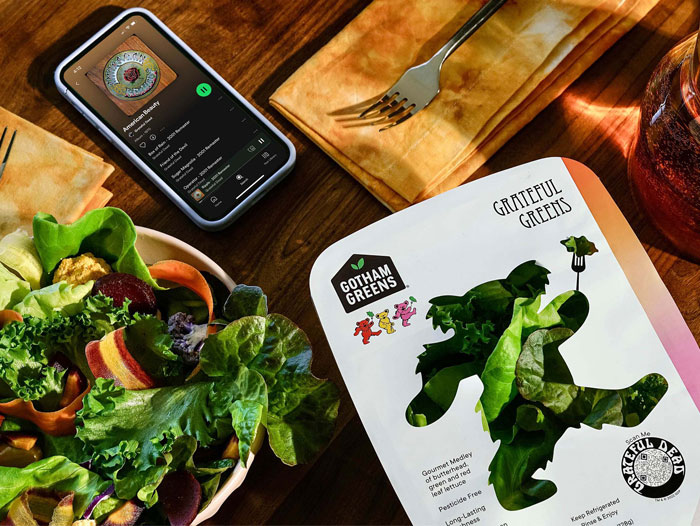 To kick things off, Gotham Greens is proud to announce a partnership with the iconic and beloved band, the Grateful Dead, on a limited-edition packaging and marketing collaboration that celebrates their shared commitment to sustainability, community, and plant-based eating. The marketing collaboration reimagines Gotham Greens’ best-selling Gourmet Medley lettuce as Grateful Greens with custom packaging featuring the band’s iconic Dancing Bears and a QR code that unlocks curated content, including a custom Grateful Dead playlist to make cooking in the kitchen more joyful. Plus, for every package of Grateful Greens sold, Gotham Greens and the Grateful Dead will plant trees in partnership with Forest Nation, dedicated to preserving the future of our planet.