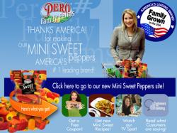 The campaign consists of a dedicated website for “Mini Sweet Peppers”, promoting the “Family Grown in the USA” theme, featuring recipes, coupons, and links to Pero Family Farms’ main site. The site also links promotions across several leading social media sites. Pero Family Farms is promoting this campaign just in time for the 4th of July and our country’s independence celebration, with millions of specially marked Mini Sweet Pepper packages going out to their retail partners across the country.
