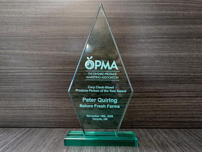 Leamington, ON – Nature Fresh Farms is proud to announce that their President and Founder, Peter Quiring, is the recipient of the OPMA’s Cory Clack-Streef Produce Person of the Year Award.