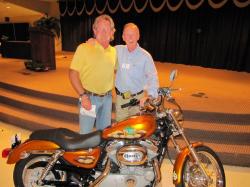 Antigo, WI — October 29, 2010 — One lucky person in South Carolina — Ricky McCloud — is tooling around on a Harley-Davidson Sportster XL883C that’s bedecked with a Wisconsin staple — potatoes. “I love the direction our annual direct-mail produce buyer sweepstakes has taken this year,” notes Tim Feit, Director of Promotions and Consumer Education for the Wisconsin Potato and Vegetable Growers Association (WPVGA). “Officially, Cecil “Chico” Caprioli from Piggly Wiggly Carolina Company was the winner. But in cooperation with the Piggly Wiggly Carolina Company corporate office, they donated the Spudster to the Piggly Wiggly Charity Classic, a charity auction. In these economic times, it’s nice to see people donate a prize to the greater good.” Ricky McCloud, who bid on and won the Sportster during the Charity Classic, owns 13 Piggly Wiggly stores in South Carolina.