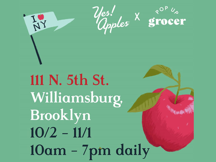 (New York, NY – ​ Pop Up Grocer,​ the world’s first-ever traveling pop-up grocery store, will bring its roster of innovative consumer brands to New York this fall for a month-long residency in Williamsburg, Brooklyn. Opening October 2nd through November 1st, Pop Up Grocer will showcase a select group of qualifying brands, vetted by founder Emily Schildt and the Pop Up Grocer team, including Yes! Apples, a women-owned and New York-grown apple brand that is sweetening life one apple.​