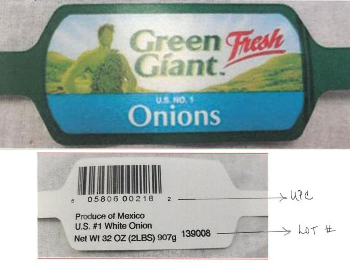 | Green Giant Fresh | 2 lb. Bag | Whole White Onions | Champaign, IL | 8/16/2021 | 60580600218-2 | 139008 |