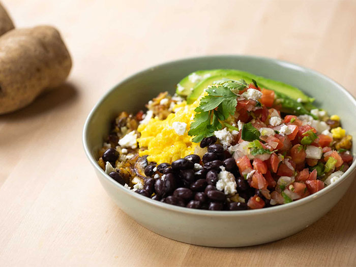 - Hash Brown Breakfast Bowl: Complete nutrition from potatoes, eggs, and fresh veggies is a winning combination to add after a long run or workout!