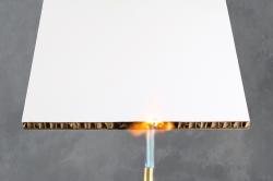 “We’ve developed a patent-pending process to produce the new structure. In simple terms, we impregnate the engineered paper core with a flame retardant and leave the clay coated print surface untouched for optimum printing quality. When Falconboard is exposed to fire, it does not ignite,” Daniel said.