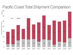 In the chart above, the orange bars represent the accumulated shipped volume this season compared to the darker bars that represent 2016. Over the month of July, the Northwest cherry industry shipped 15.2 million boxes of cherries, which is 529,000 boxes more than the Round 3 estimate, or within 3.5 percent. August so far has seen a falling daily average as packers close up for the season. To date, we've shipped 2.4 million boxes of cherries in August, and expect to ship up to 2 million more before the season is over. Quality coming in from the orchards is high, and sugars are peaking for the year.